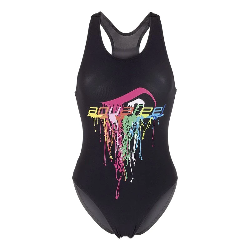 Dieser Mädchen Aquafeel-Back Schwimmanzug aus unserer Kollektion Watercolors, verfügt über einen sehr komfortablen Trainingsrücken mit ovalem, weniger tiefen Ausschnitt für mehr Halt im Taillenbereich und hohem Beinausschnitt. X-Designträger umranden die Schulterblätter und gewährleisten optimale Bewegungsfreiheit. Die Po-Naht sorgt für perfekten Sitz. Abgerundet wird das frische Design von dem kontrastreichen mehrfarbigen Druck.
