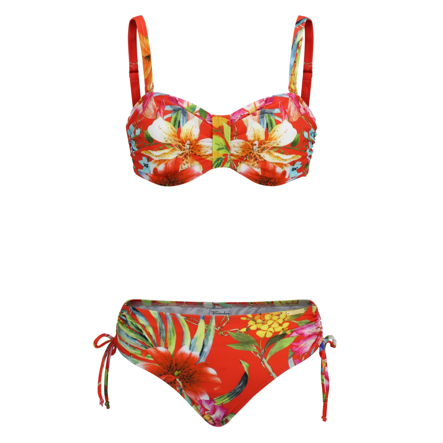 Der Bandeau – Bikini aus der Serie „Florida Beach“ bekommt durch die seitliche Schnürung einen romantisches und verspieltes Detail, die farbenreichen Blüten in den Trendfarben lassen Sie leuchten.