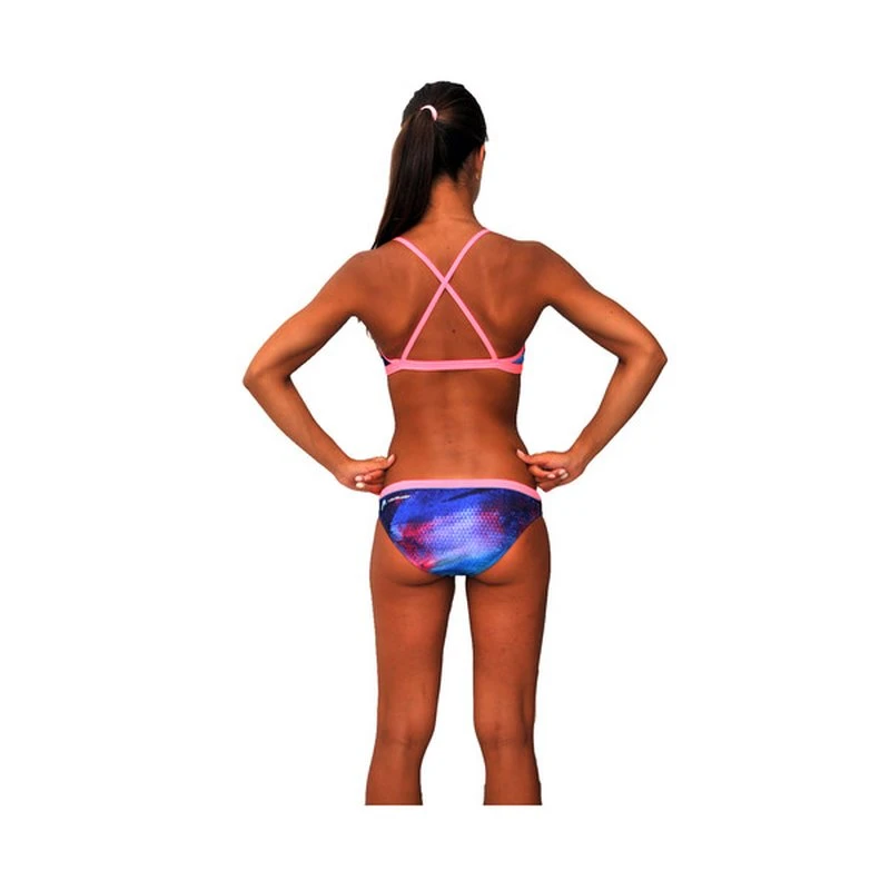 Sportlicher Schwimm-Bikini. Der PIPE-Style garantiert beste Passform und perfekten Halt auch bei schnellen Schwimm-Trainings-Einheiten, sowie auch nach Startsprüngen und Wenden. Fashion meets Function. Allover Print auf Top und Hose. Bändchen zur Fixierung an Top und Hose. Spaghetti Träger und Cross Back Rückenlösung am Top. 100% chlorresistent